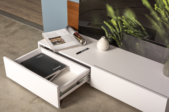 Комод Тайл 16.236 сатин 7045 SU, эмили блаш U9135, белый PE шагрень, собирается на любую сторону