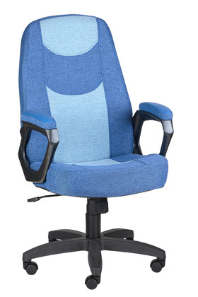 Кресло Престиж Самба обивка кожзам синий, подлокотники пластик, крестовина пластик, механизм отклонения спинки