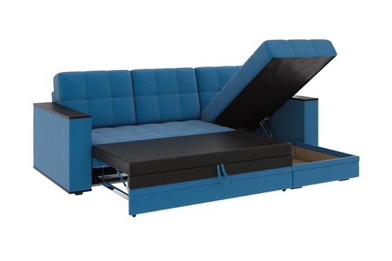 Диван-кровать угловой Тэдди 1504 композиция 2, букле Pique 009 синий, модульная система, сборка на любую сторону
