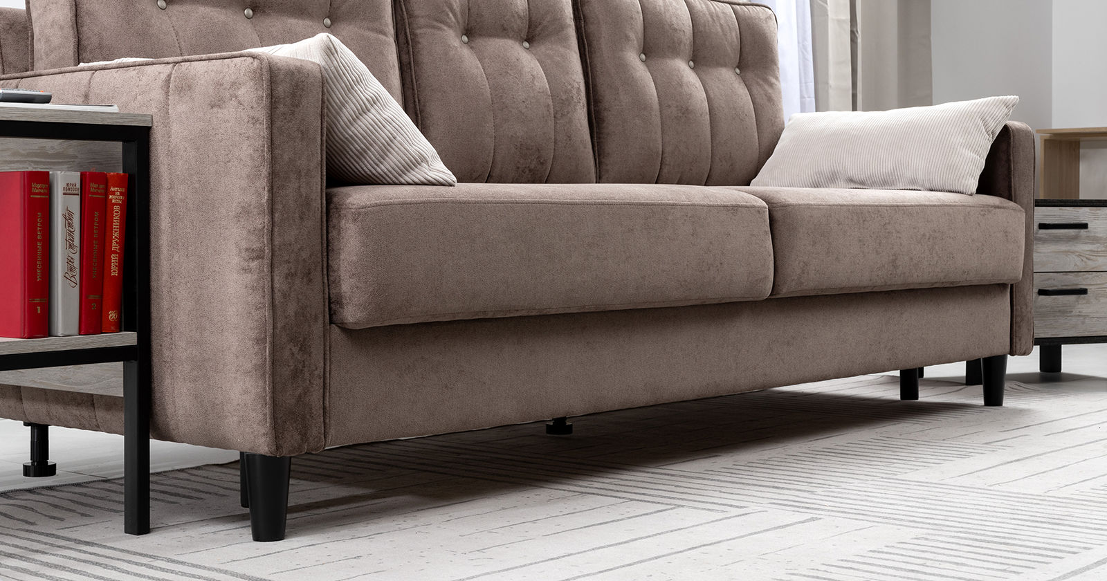 Объемные подушки дивана обеспечивают эргономичную посадку, а ровное спальное место - полноценный ночной отдых.