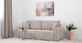 Диван-кровать угловой Оксфорд 710 композиция 2, шенилл Muza 04 светло-бежевый, модульная система, сборка на любую сторону