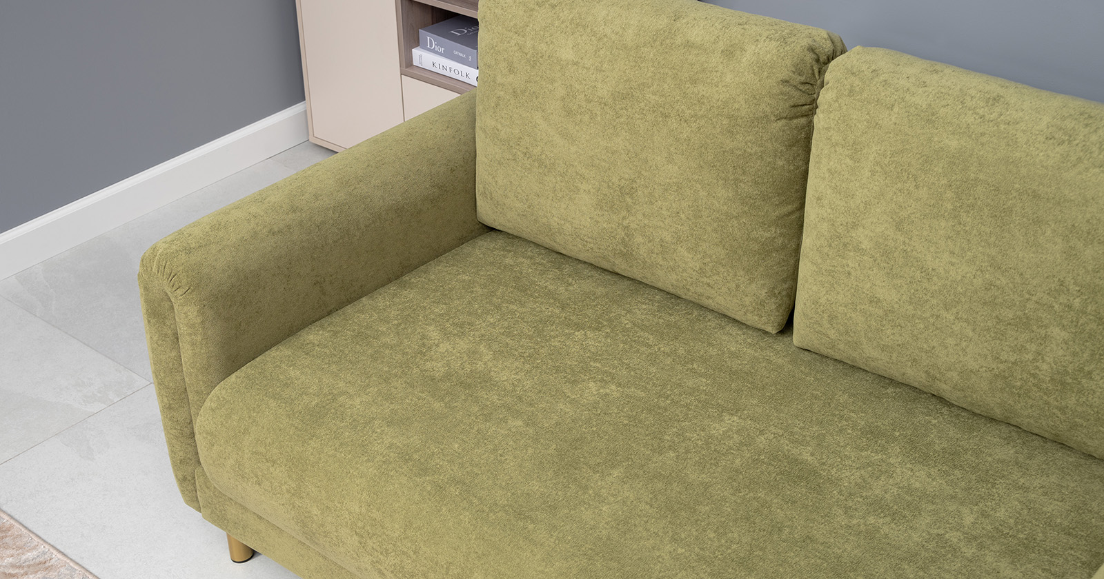 Декоративные утяжки и складки на подлокотниках придают дивану неповторимый шарм, который станет изюминкой любого интерьера — от классического до современного. Приспинные подушки со сборкой в верхней части.