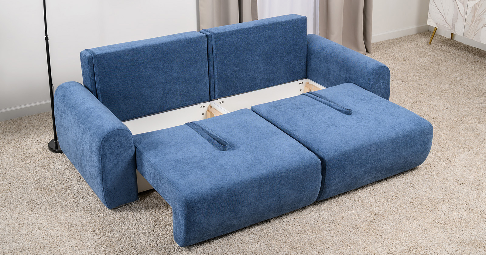 Диван-кровать прямой Тэдди 1504 композиция 1, букле Pique 009 синий, модульная система