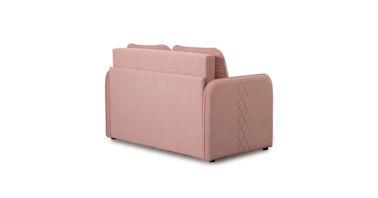 Стильный компактный диван для детской и гостиной. При своих скромных размерах он трансформируется в полноценное спальное место для детей и подростков. Лаконичный дизайн в виде декоративной стежки подчеркивает фактуру велюра, а небольшие размеры позволят разместить его в любом пространстве.