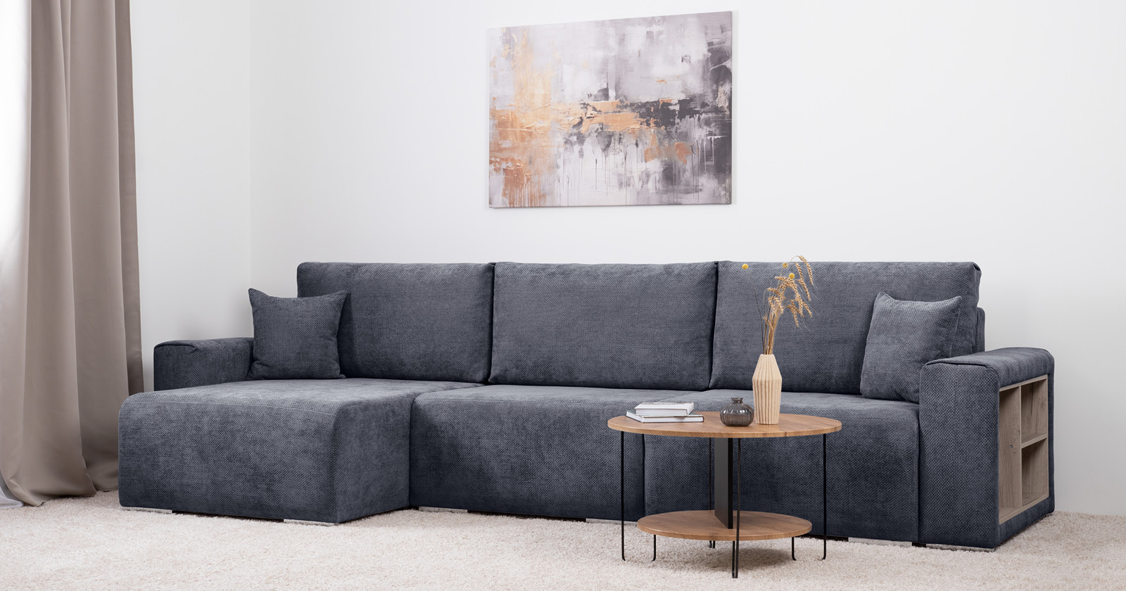 Диван-кровать угловой Тэдди 1506 композиция 2, букле Pique 011 серый, модульная система, сборка на любую сторону