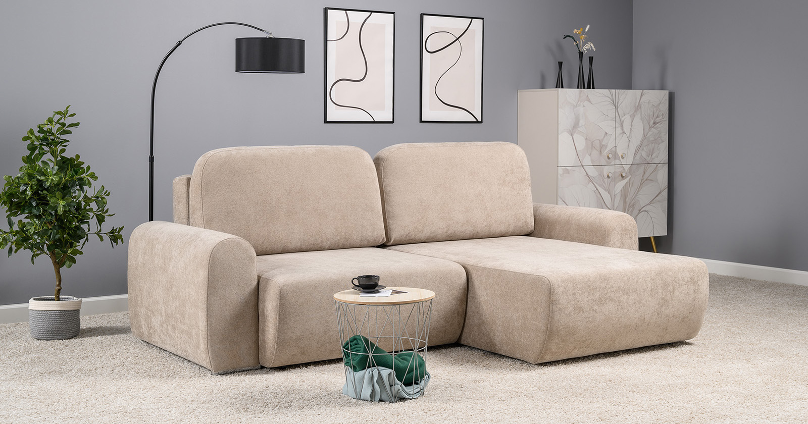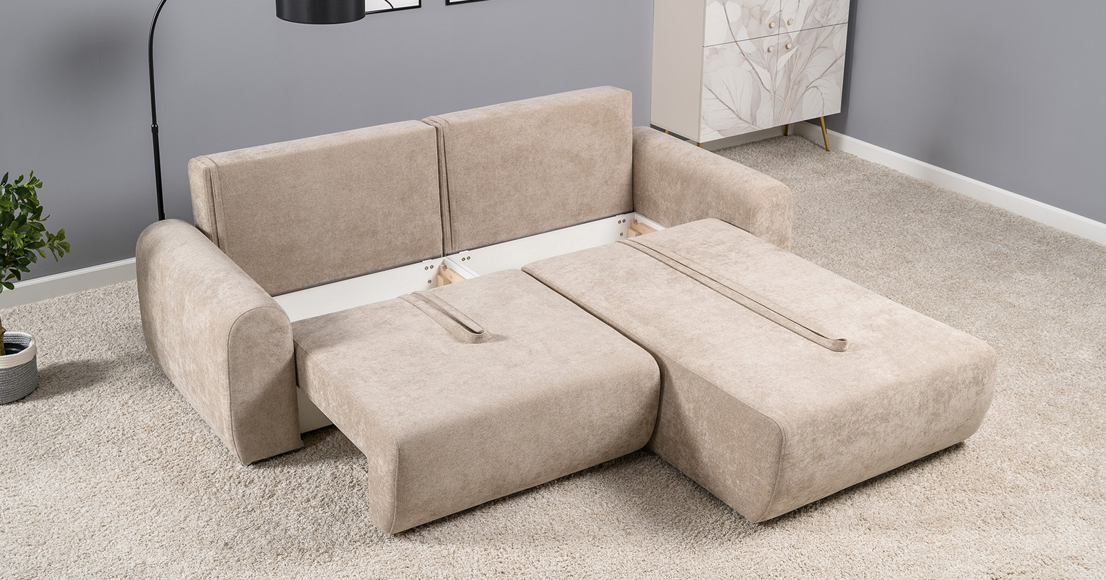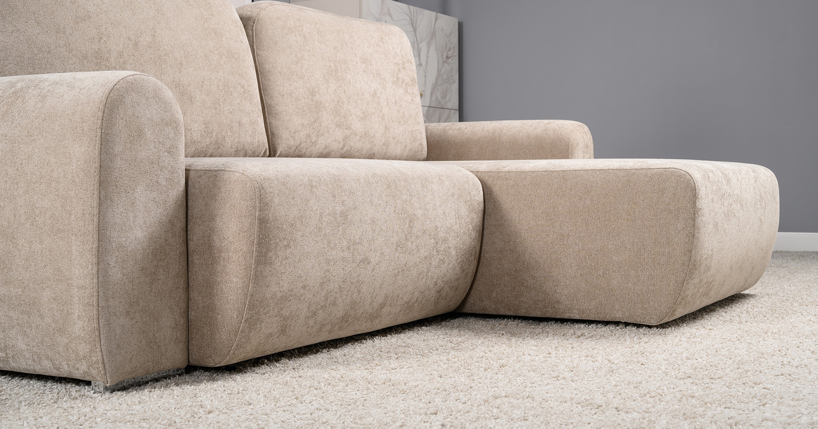 Диван-кровать угловой Тэдди 1502 композиция 2, букле Pique 006 бежевый, модульная система, сборка на любую сторону