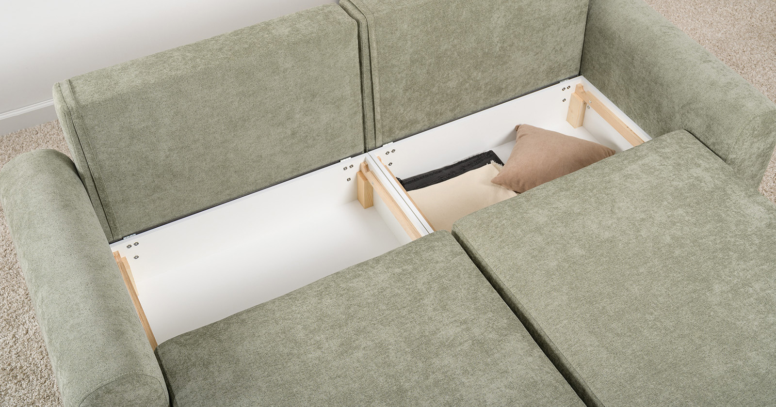 Диван-кровать угловой Тэдди 1503 композиция 2, букле Pique 007 оливковый, модульная система, сборка на любую сторону