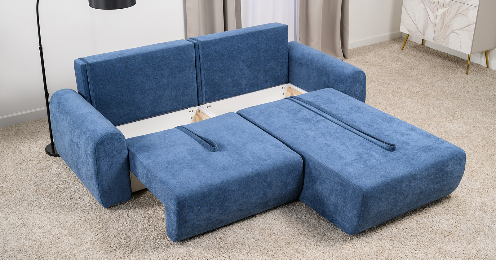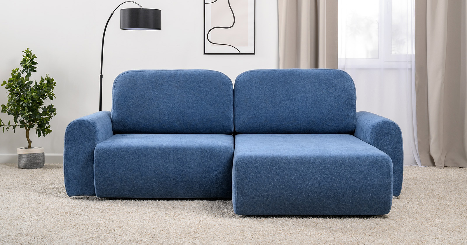Диван-кровать угловой Тэдди 1504 композиция 2, букле Pique 009 синий, модульная система, сборка на любую сторону