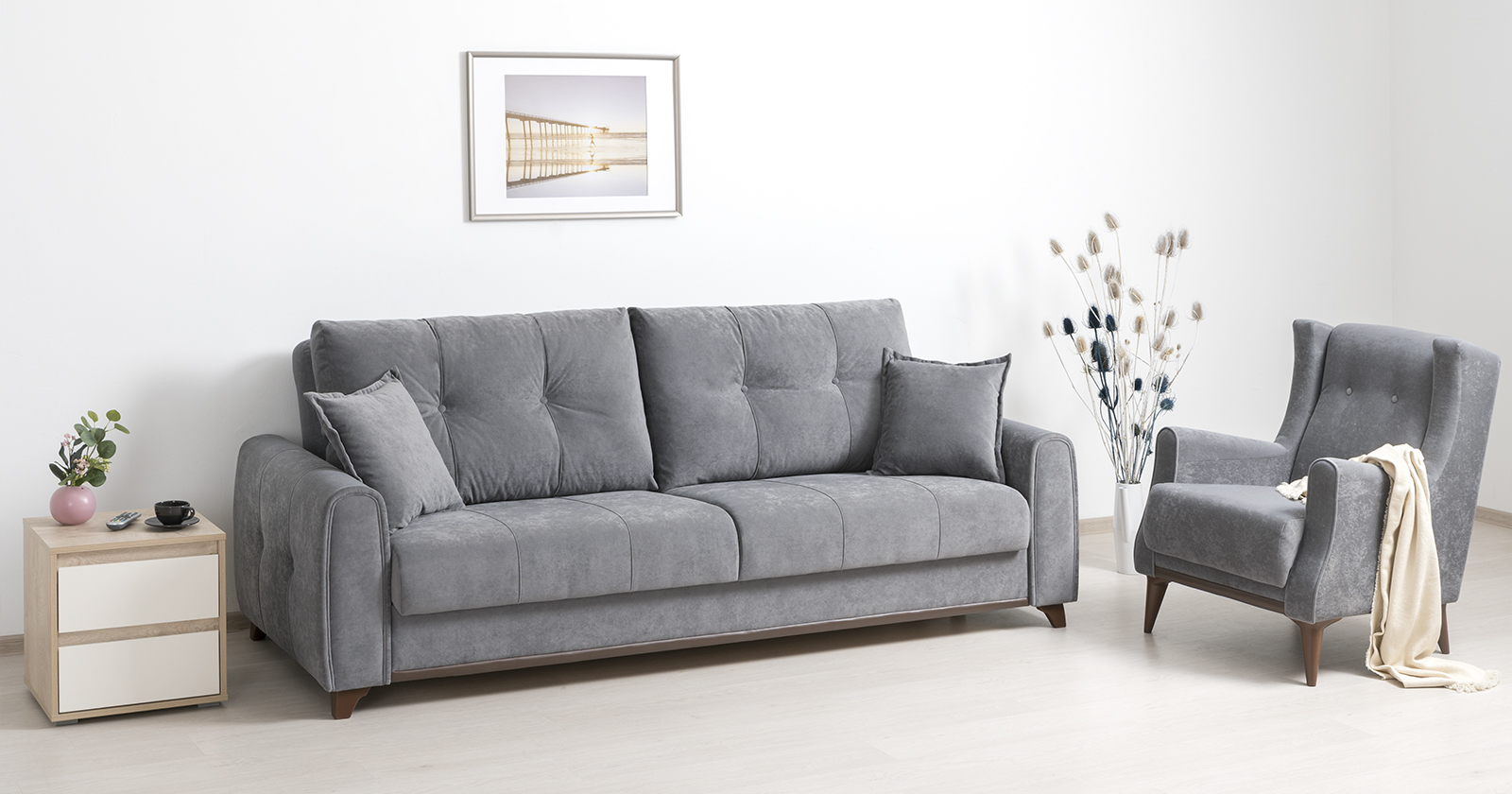 Плимут - современный диван с комфортной посадкой. Может быть дополнен креслом Плимут. Удачно впишется в любой современный интерьер благодаря универсальному дизайну и трендовым цветам обивки. При разложении не требует отодвигания от стены. Обеспечит полноценным ровным спальным местом двух человек.