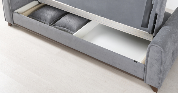 Выполнен в модном мягком велюре ROMANCE оригинальной фактуры. Ткань легко чистится, устойчива к зацепам, обладает повышенной износостойкостью. Благодаря особой технологии гладкого крашения Frozen Flower на поверхности ткани присутствует легкий краш–эффект, подчеркивающий невероятно мягкую фактуру ткани.