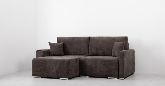 Диван-кровать угловой Атлант со столиком велюр темно-коричневый шоколад со спальным местом (сборка на любую сторону)