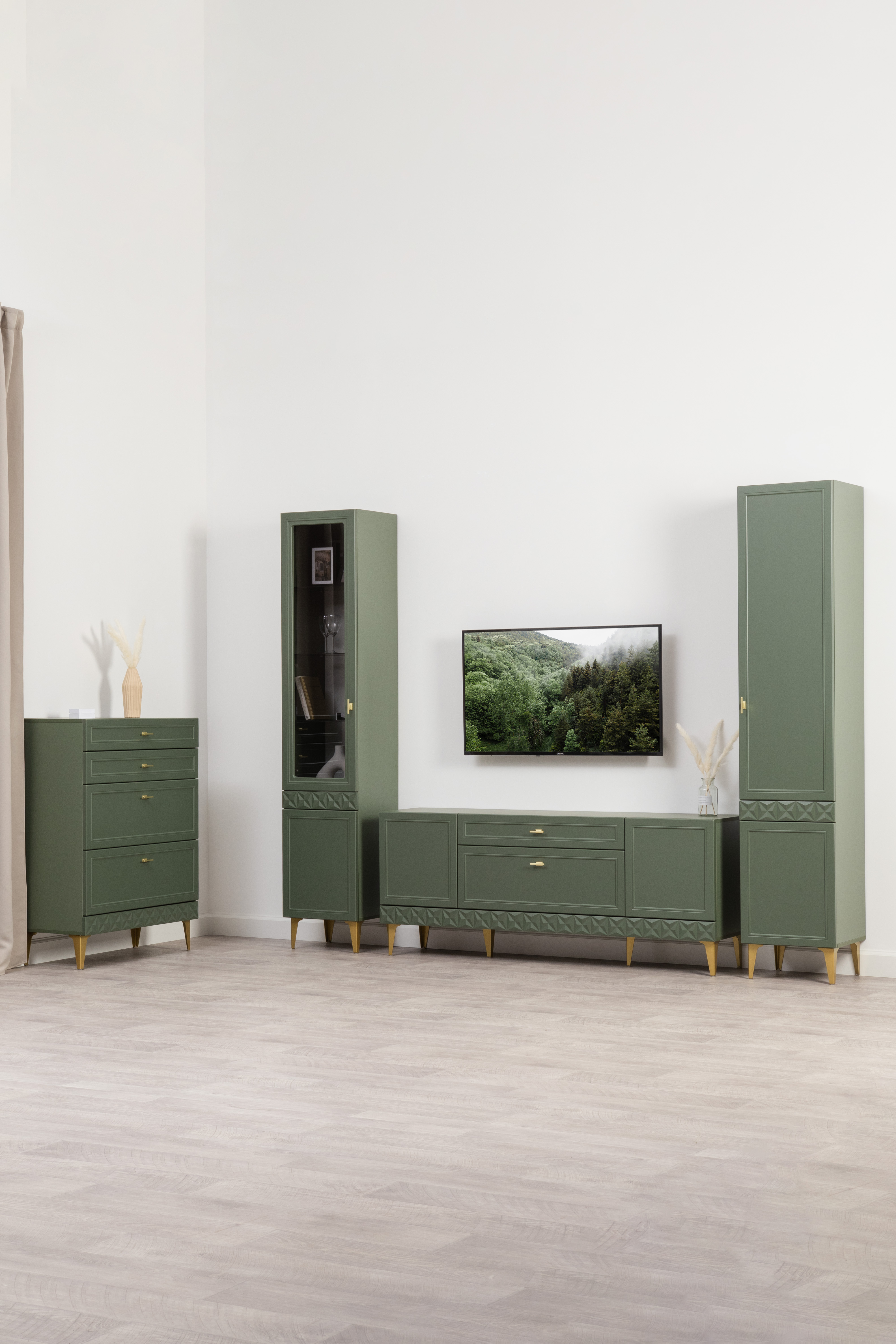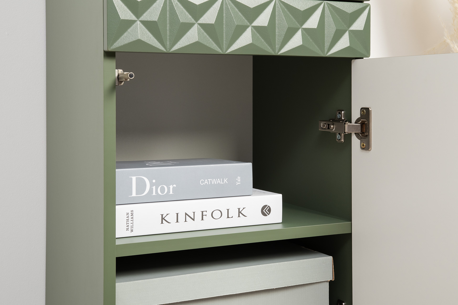 Гостиная Марион композиция 1 дымчатый зеленый K521, олива шагрень AG 1050 ПВХ, белый PE шагрень (собирается на любую сторону)