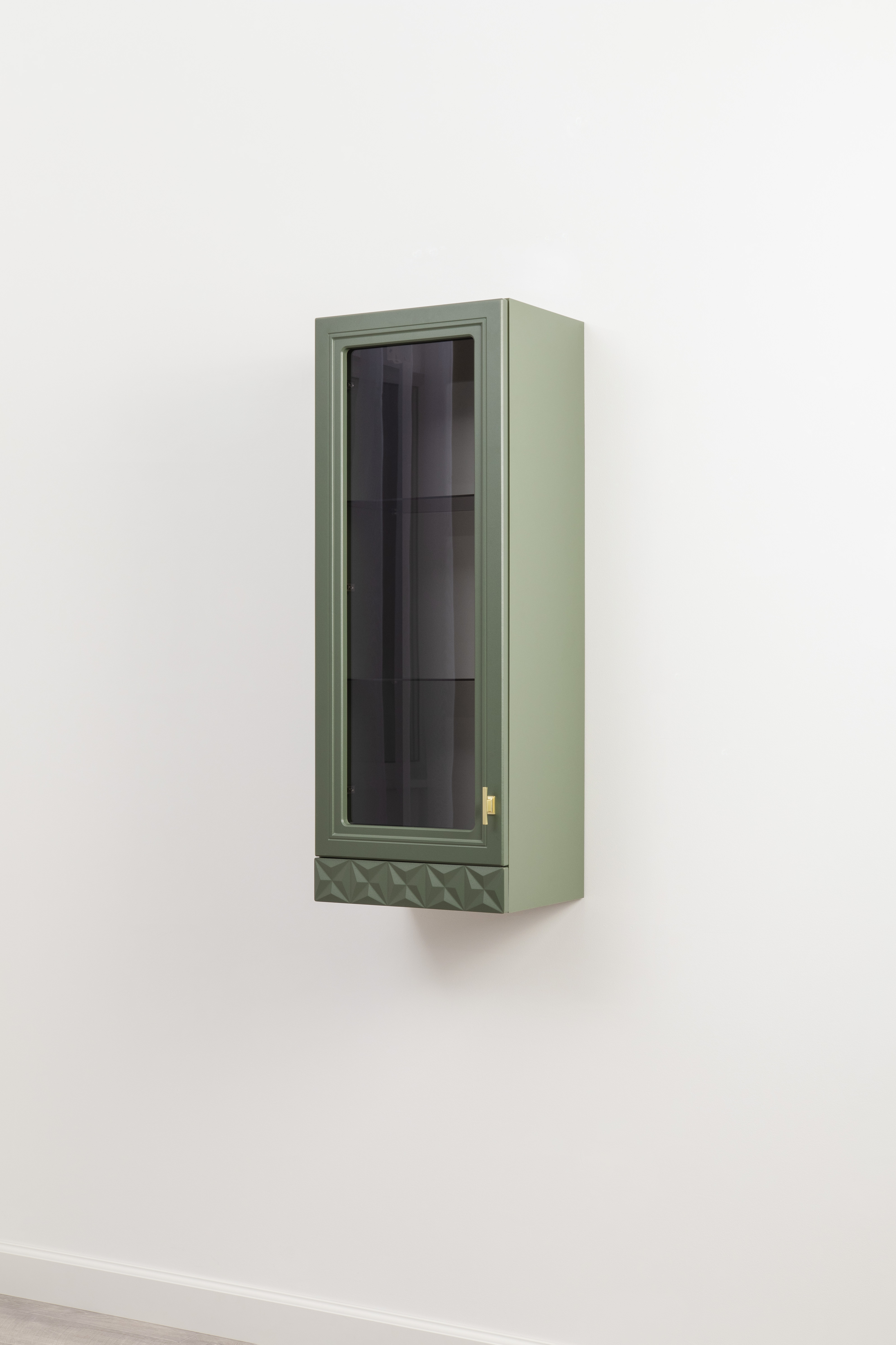 Шкаф-витрина Марион 16.397.01 дымчатый зеленый K521, олива шагрень AG 1050 ПВХ (собирается на любую сторону)