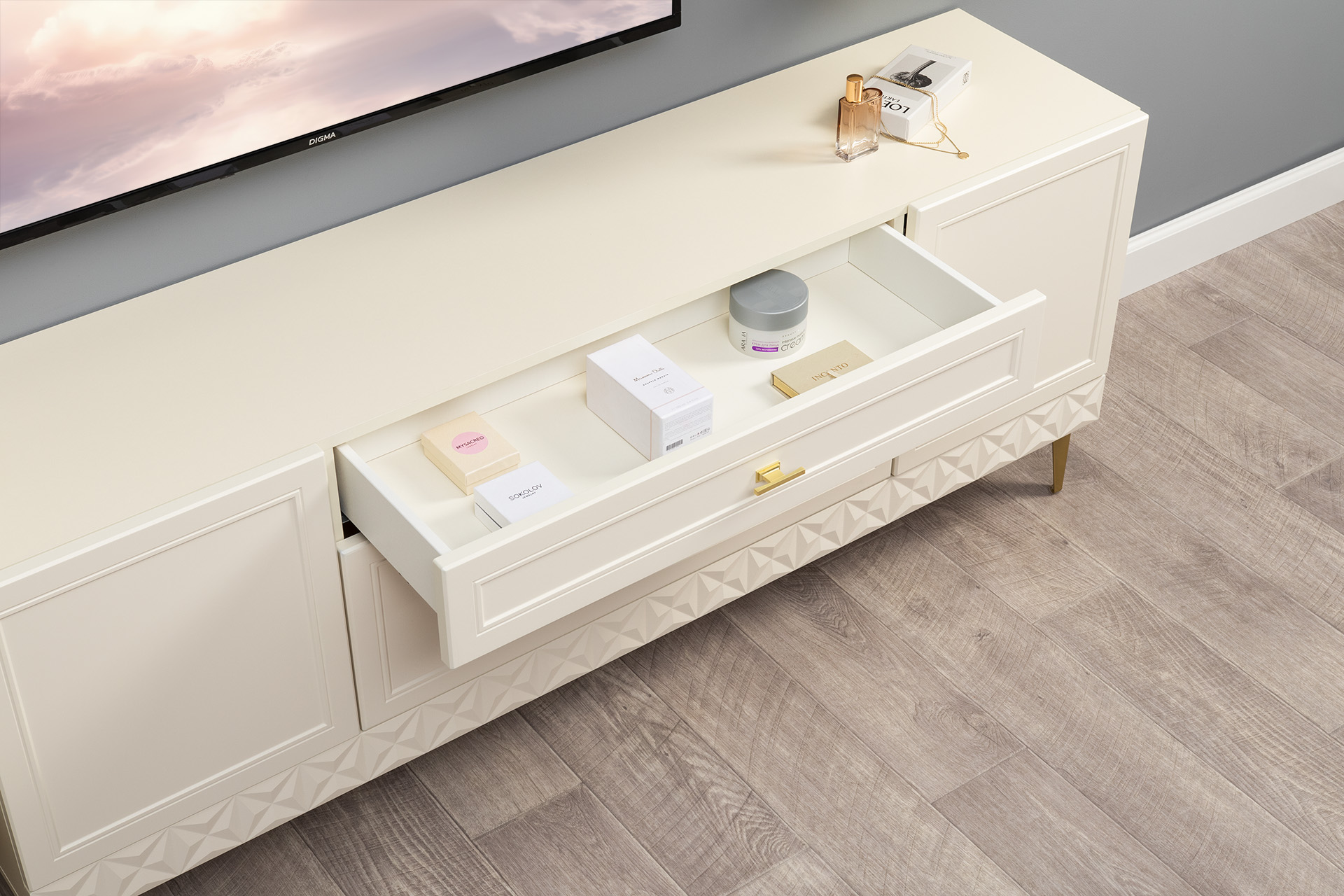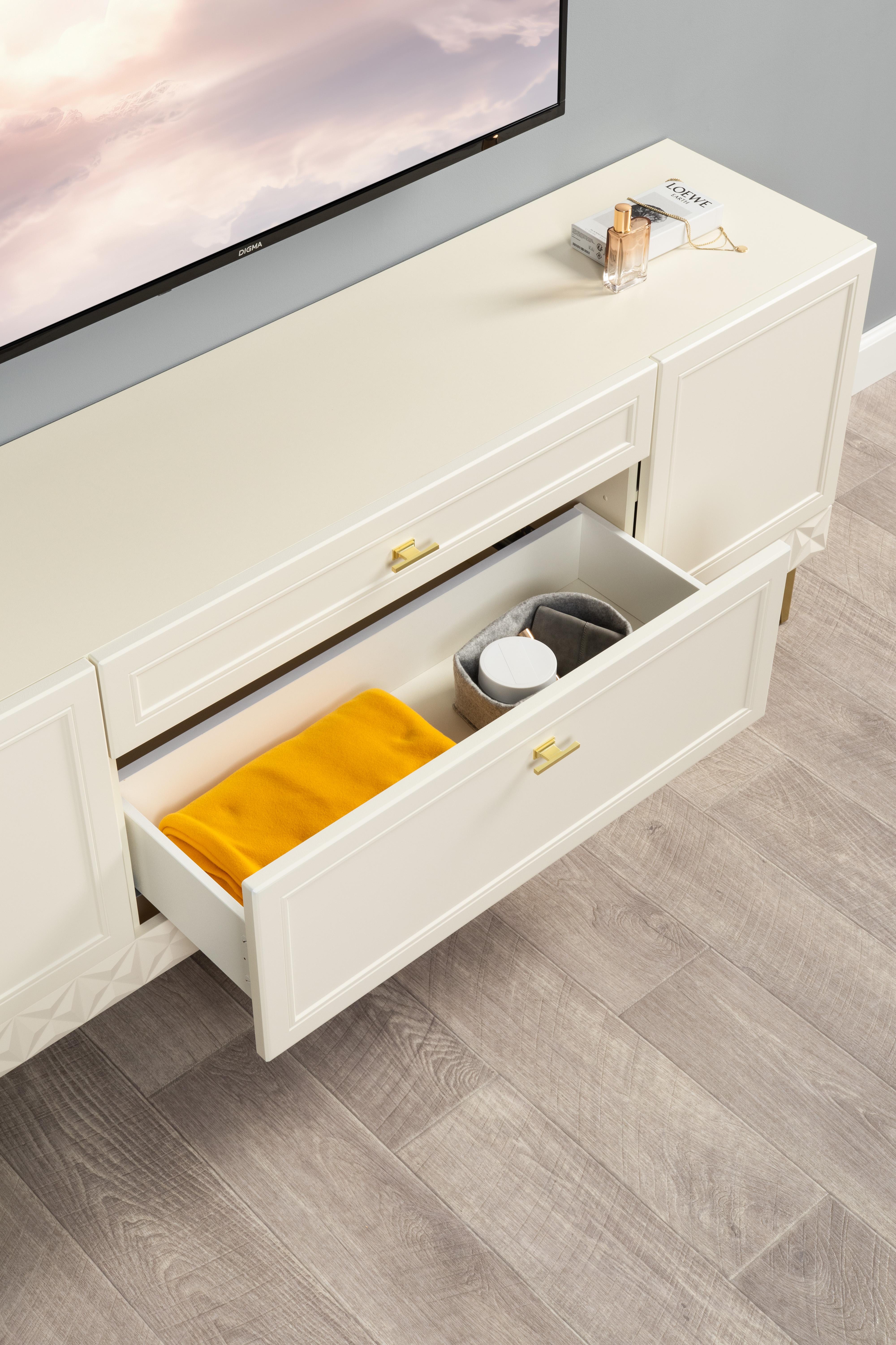 Комод Марион 16.249 слоновая кость С341 PE, слоновая кость 6898 ПВХ, белый PE шагрень