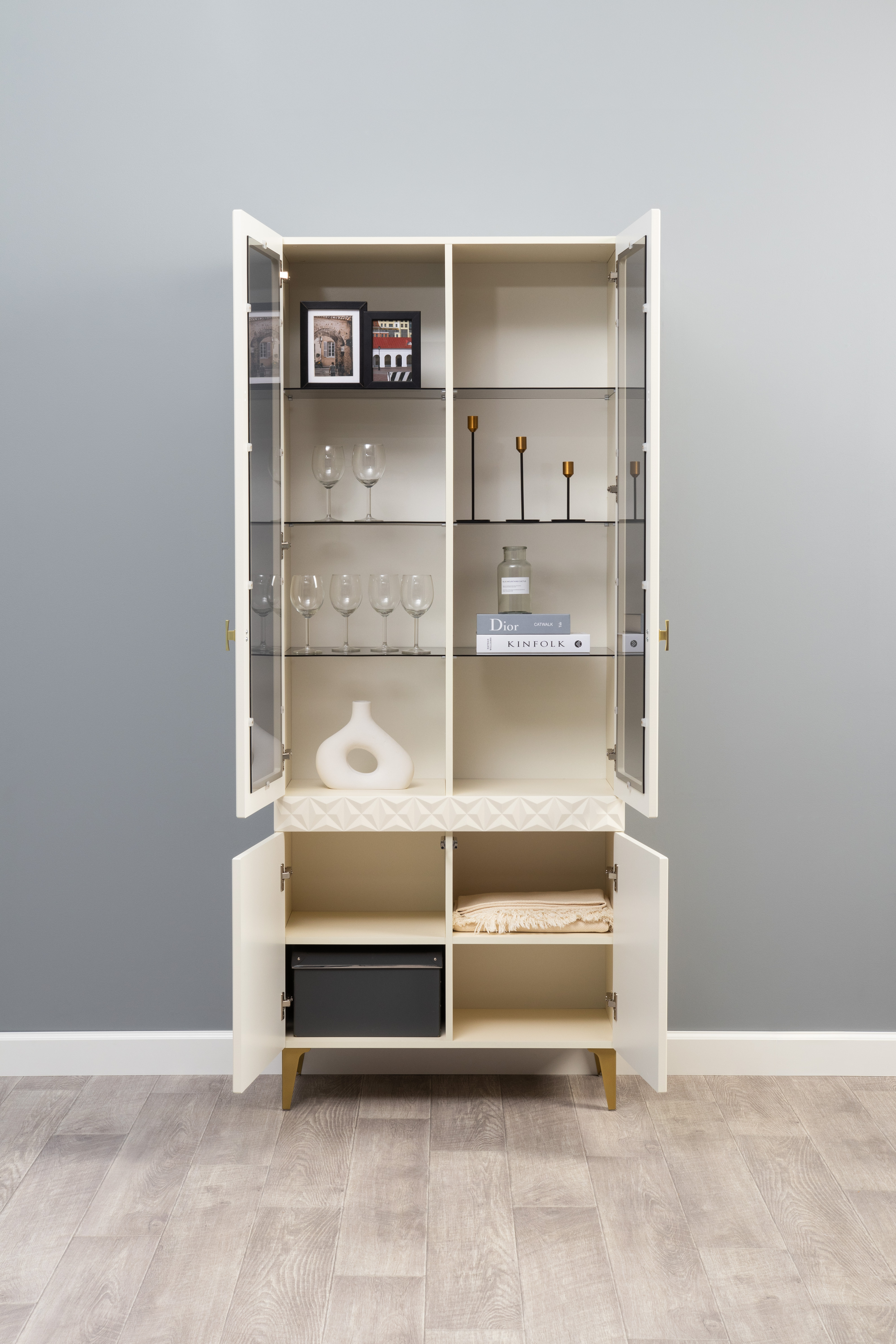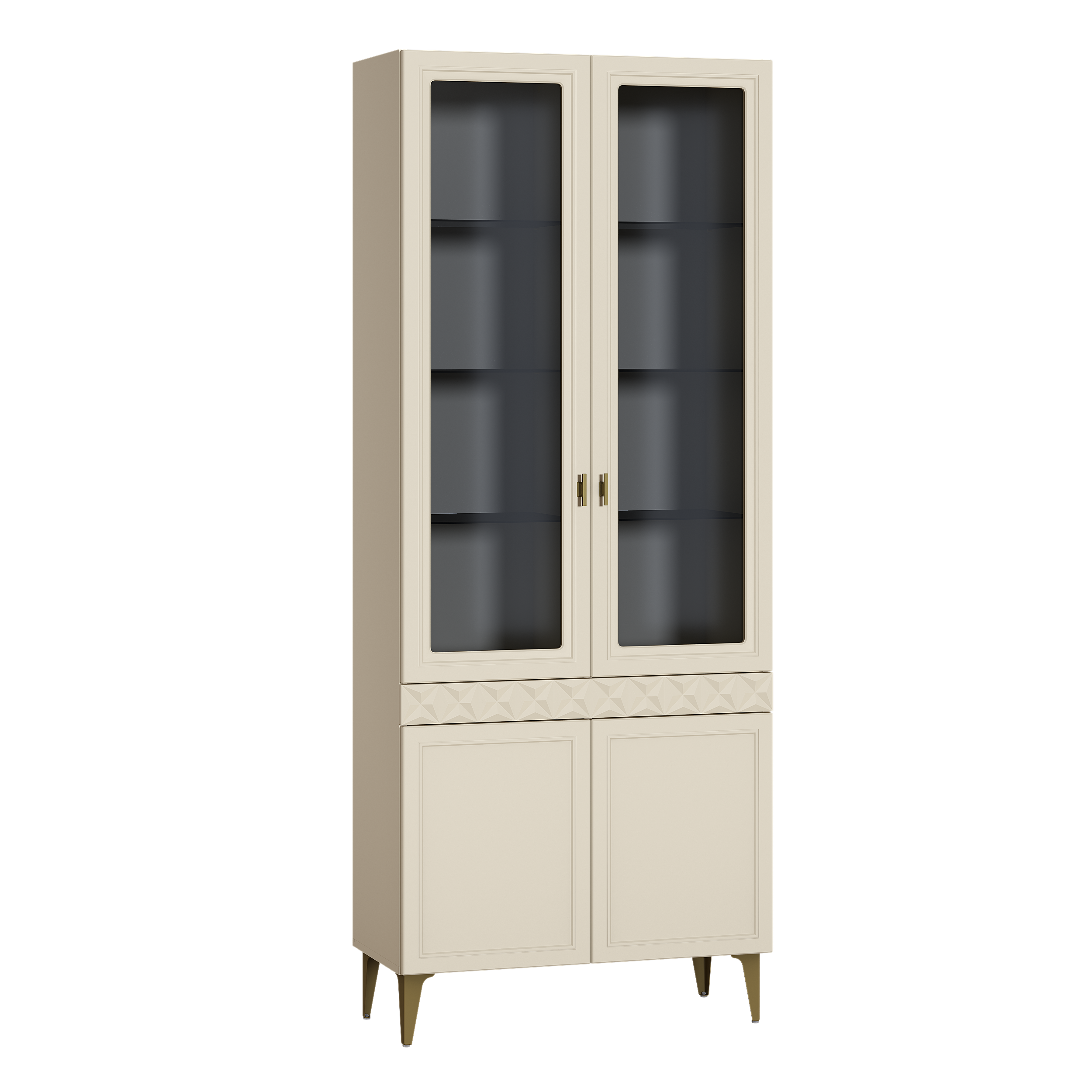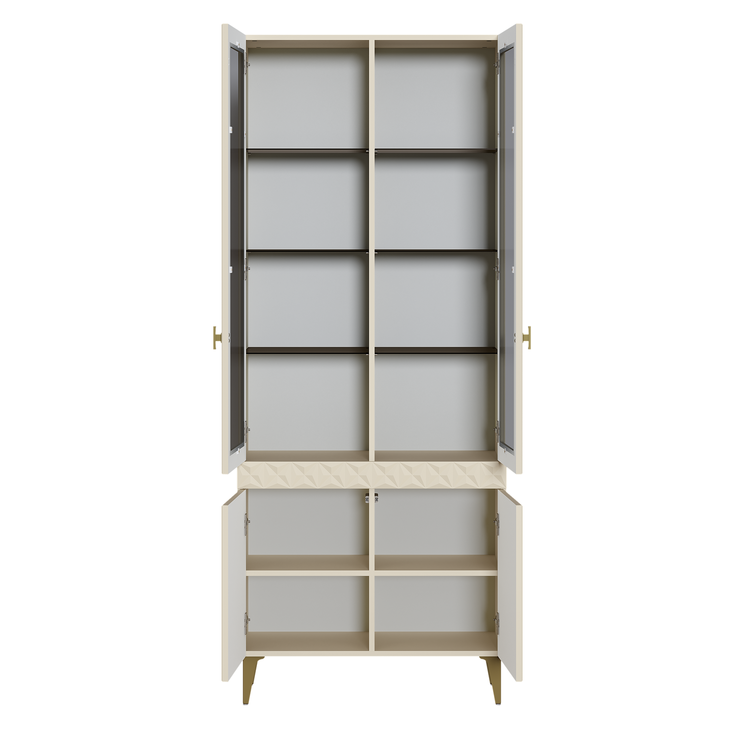 Шкаф-витрина Марион 16.397.01 слоновая кость С341 PE, слоновая кость 6898 ПВХ (собирается на любую сторону)