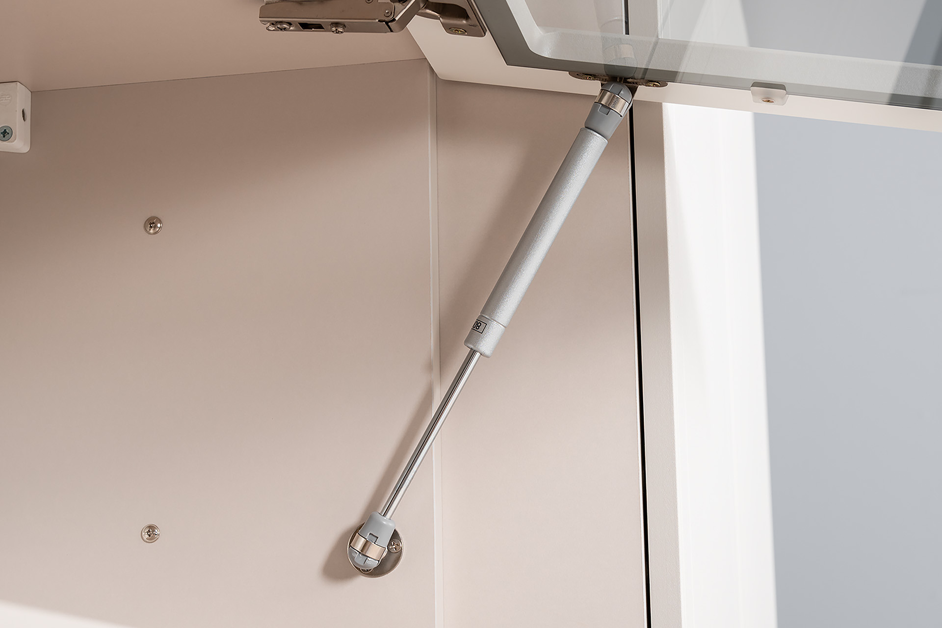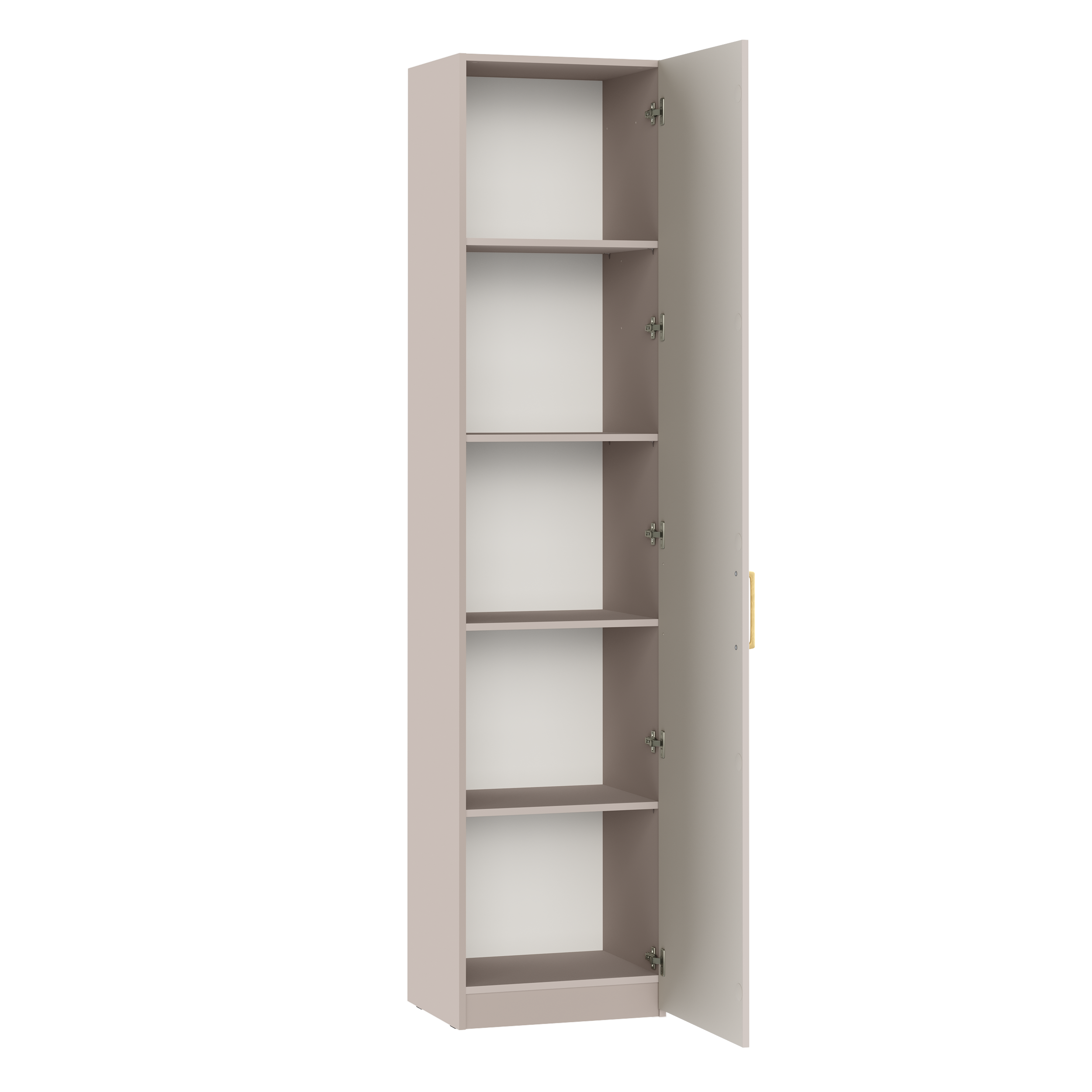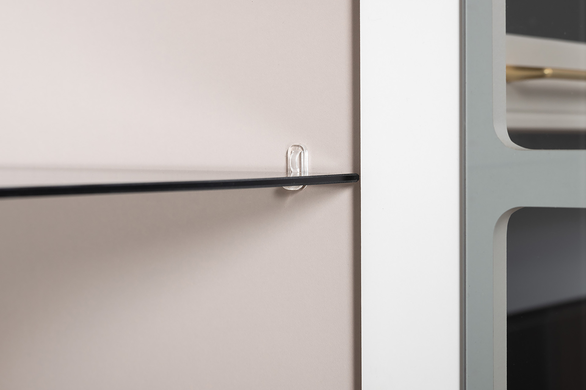 Петли с доводчиками, полное выдвижение ящиков, выдвижная штанга в шкафу для одежды и съемные полки делают использование максимально комфортным.