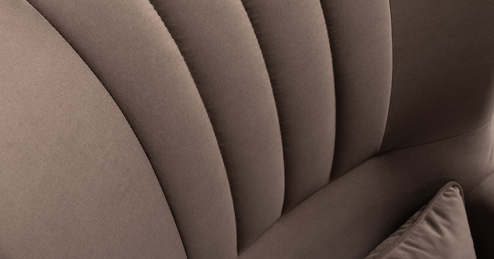 Вертикальная объемная стежка в средней части спинки; кант на спинке, подлокотниках и декоративной подушке