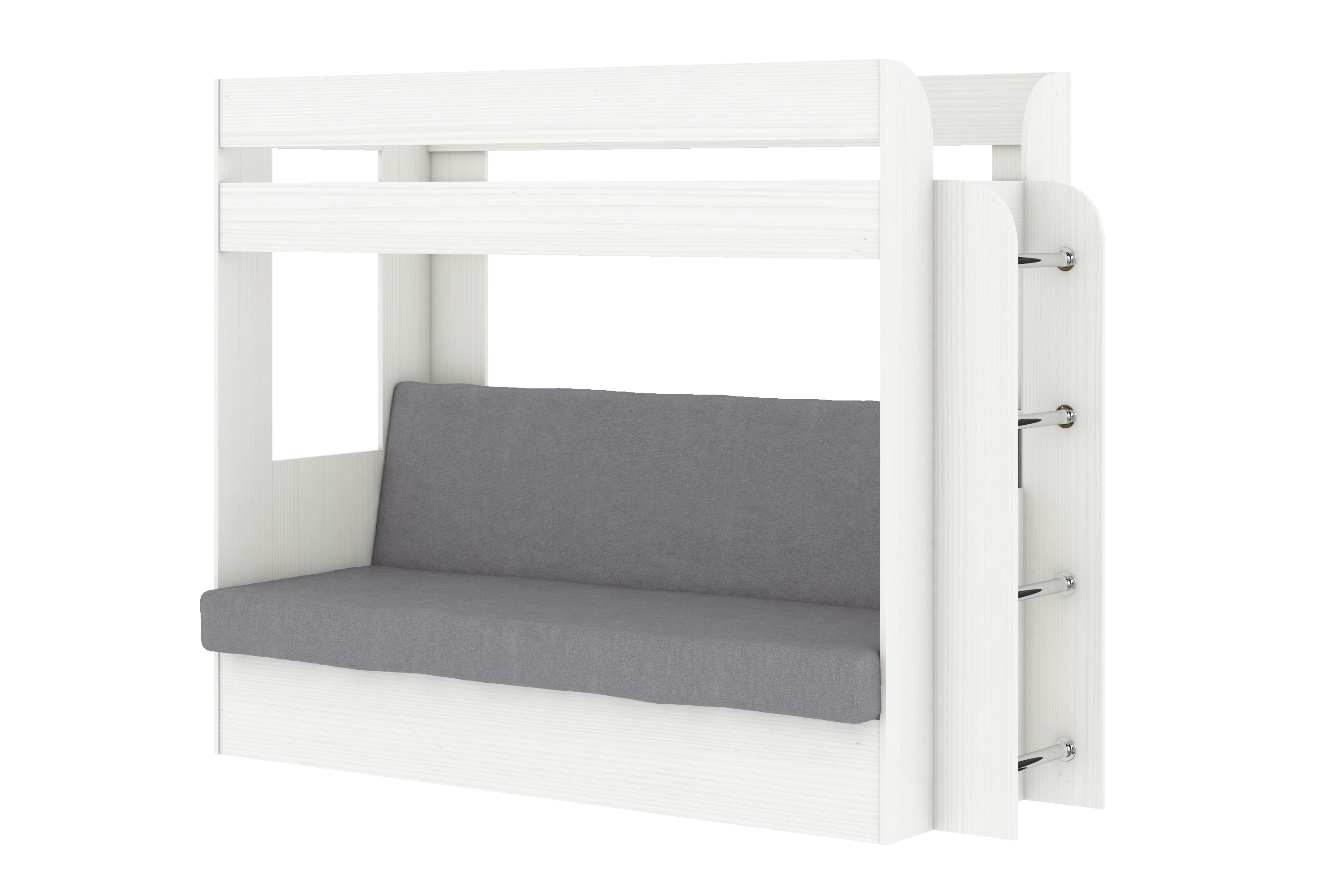 Кровать детская двухъярусная Карамель 75 бодега светлая, диван - велюр Вивальди 7 серый (сборка на любую сторону) спальное место верх 80х190, низ 120х185