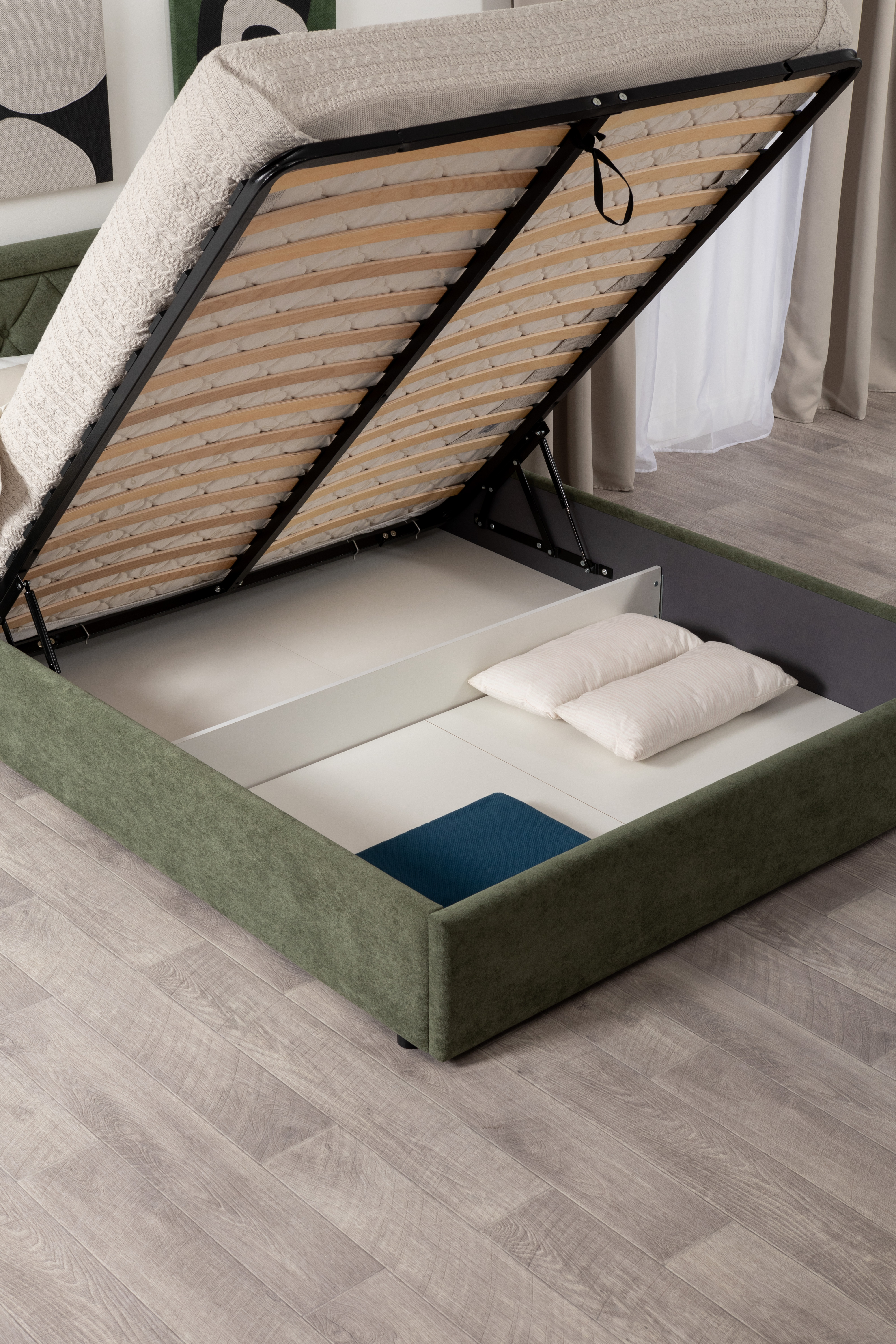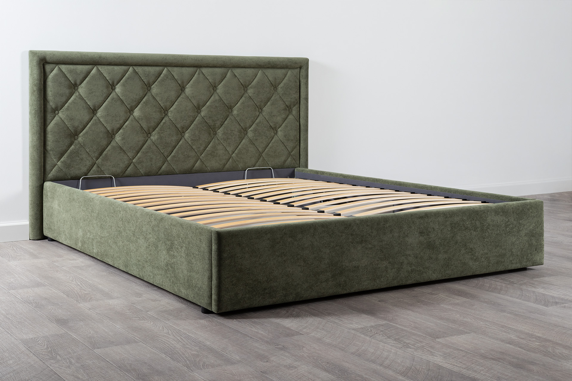 Кровать Марион 160 велюр OCEAN 012 темно-зеленый с ортопедическим основанием и подъемным механизмом (спальное место 160 х 200)