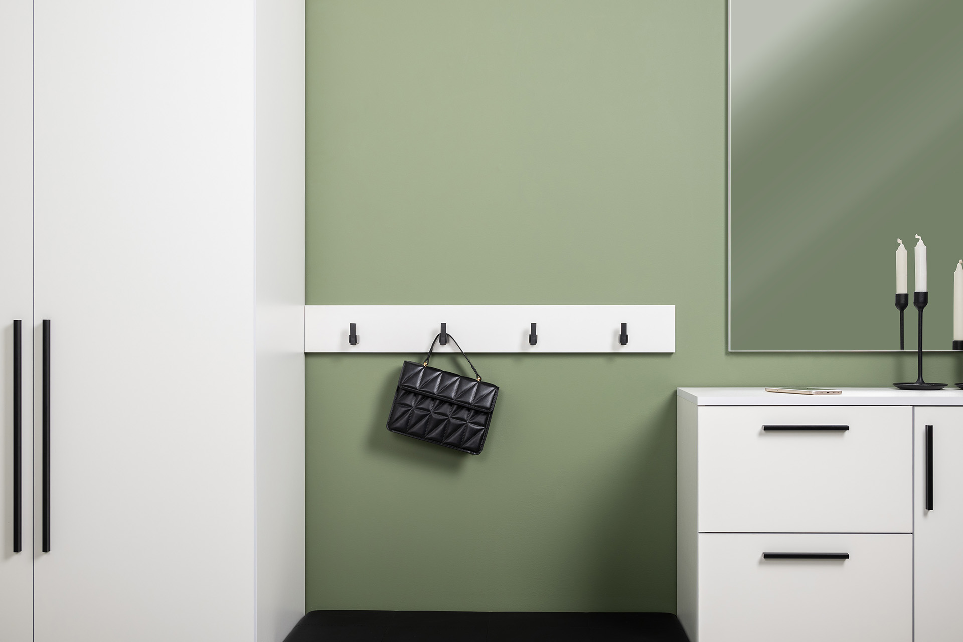 Нейтральный белый цвет визуально расширит ограниченное пространство прихожей.