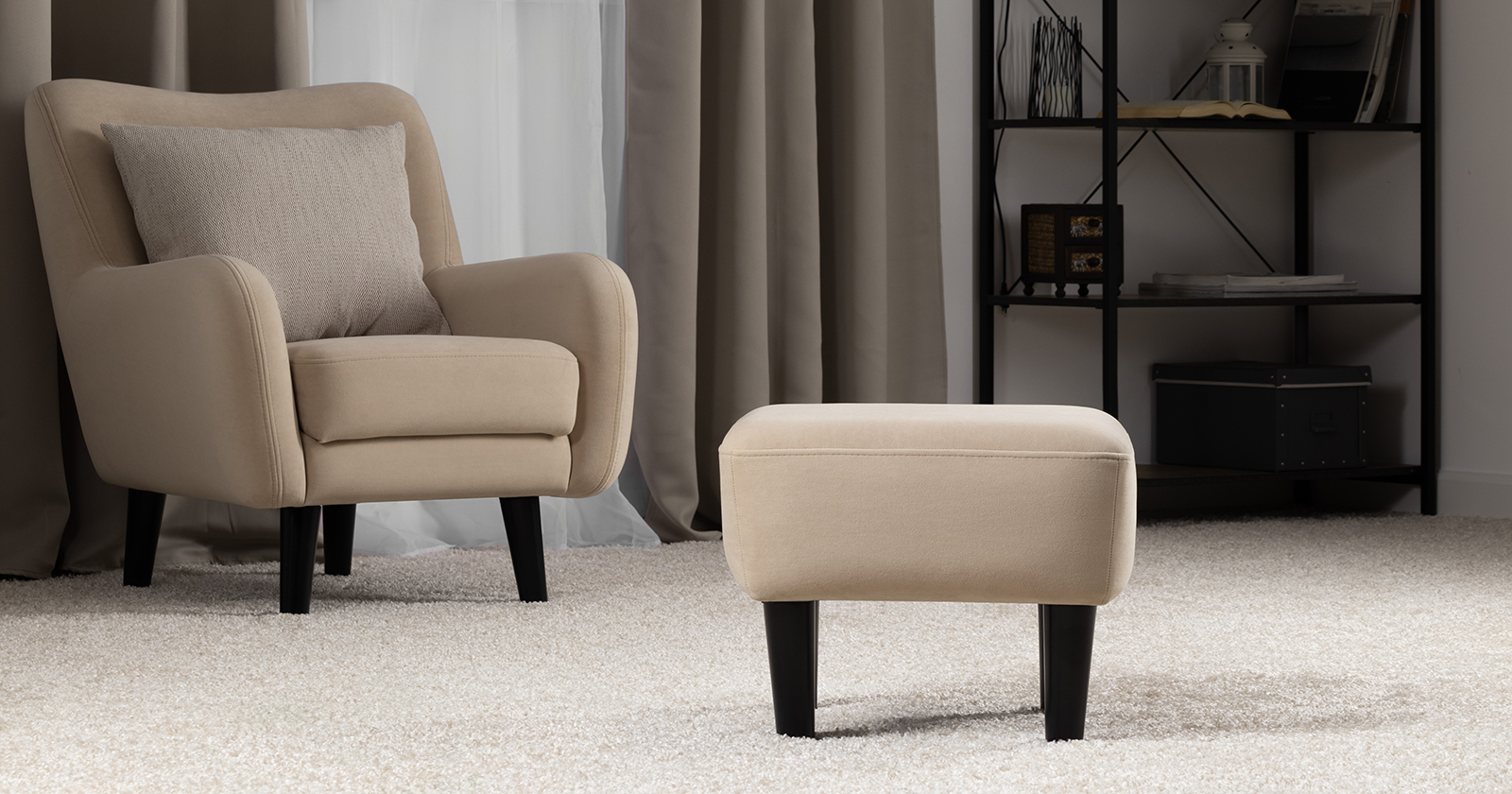Мягкие линии и визуальная легкость — отличительные черты пуфа Дакота. Гармонично дополнит диван и кресло из этой коллекции.