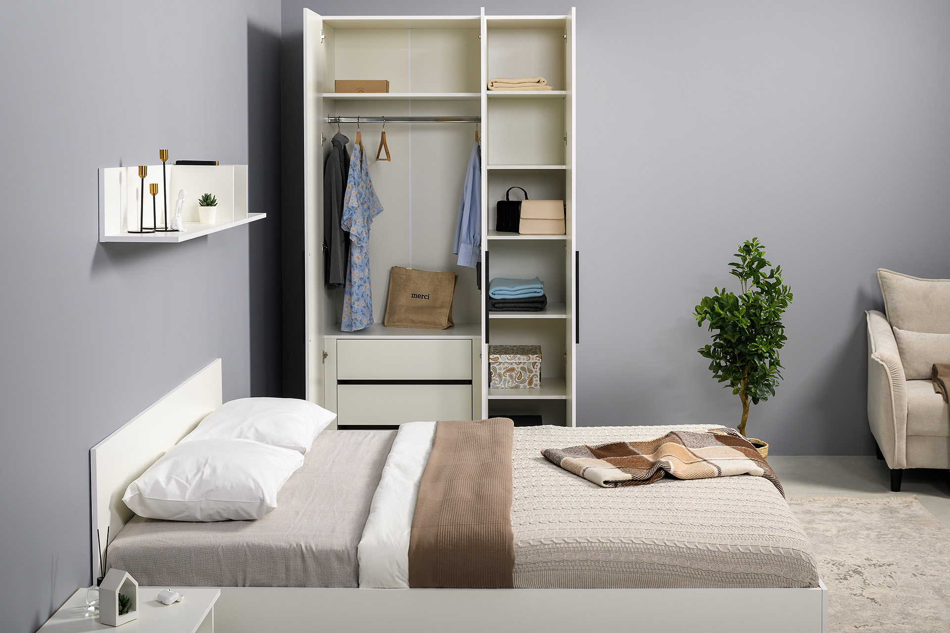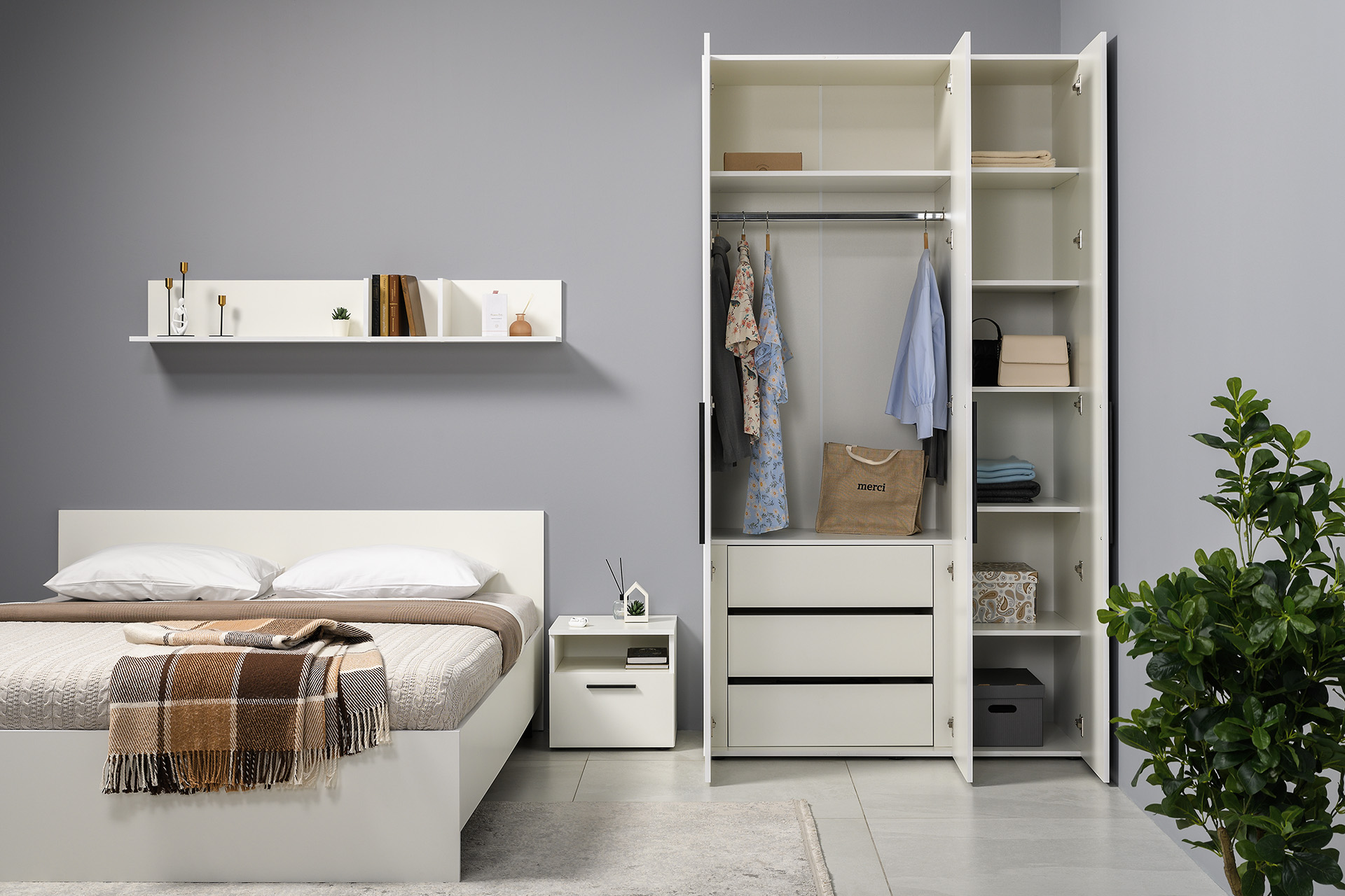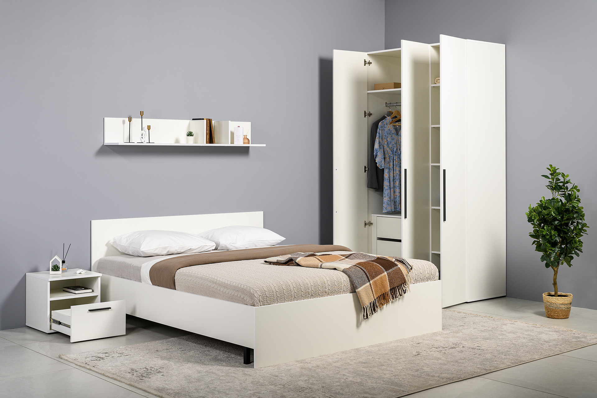 Спальня Эйр композиция 1 белый РЕ шагрень, спальное место 160 х 200