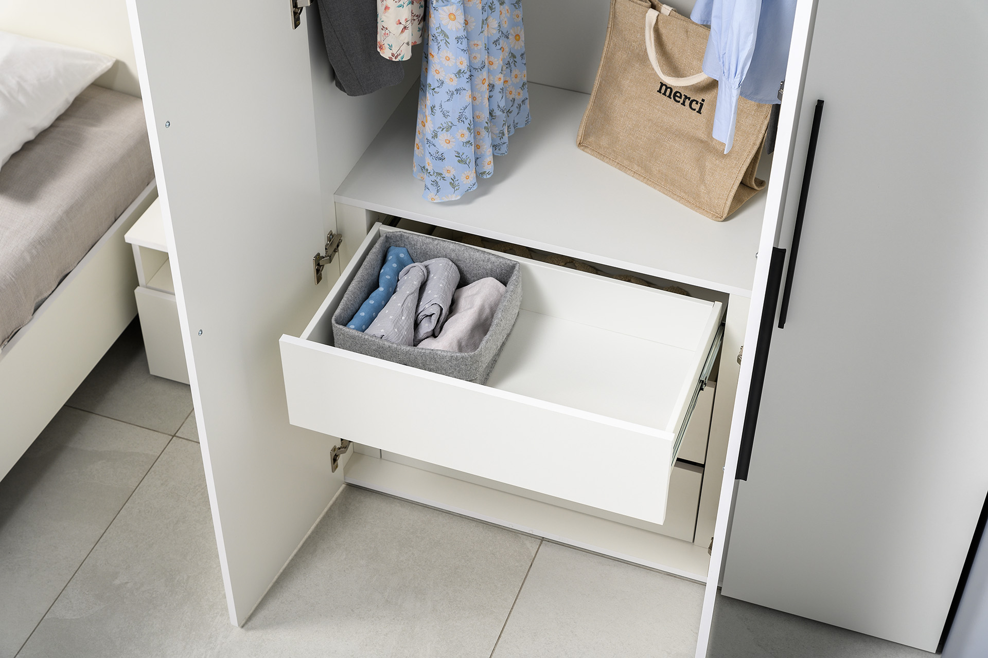 Шкаф для одежды Эйр 13.340 белый PE шагрень, собирается на любую сторону