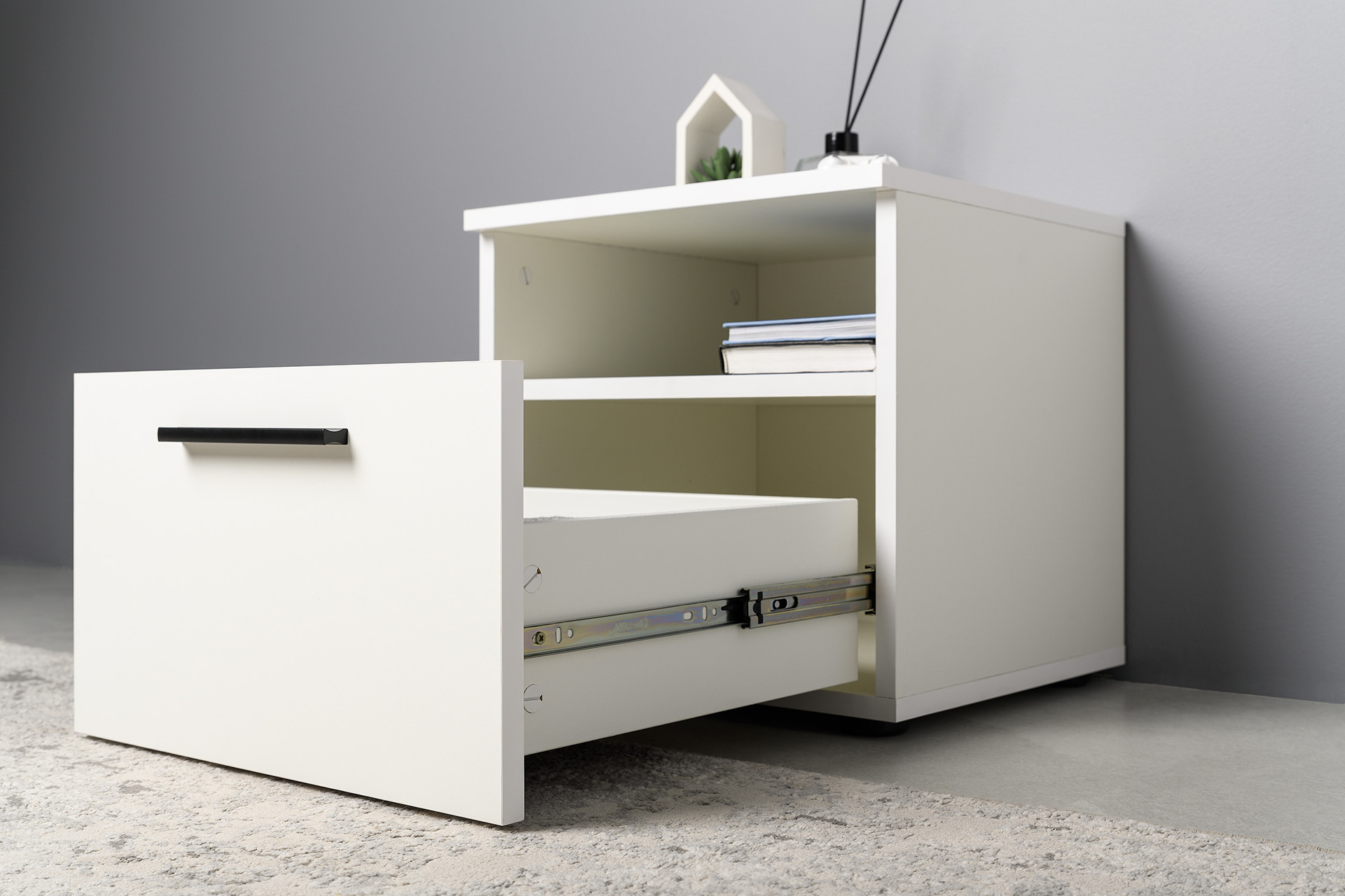 Тумба под ТВ Эйр 16.55 белый PE шагрень, собирается на любую сторону