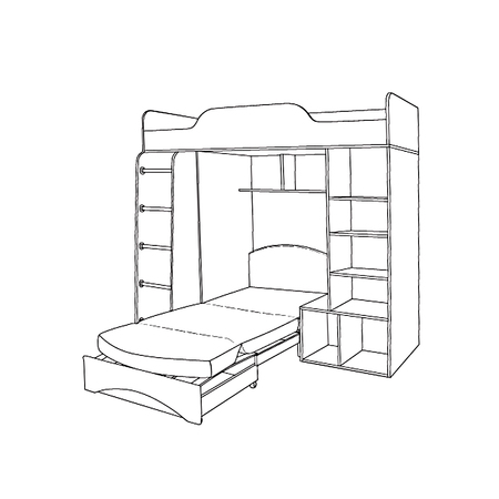 Многофункциональная кровать-чердак очень понравится Вам и Вашему малышу, к ней Вы можете подобрать лестницу ступеньками или железную, ограждения на верхнее спальное место, матрас.