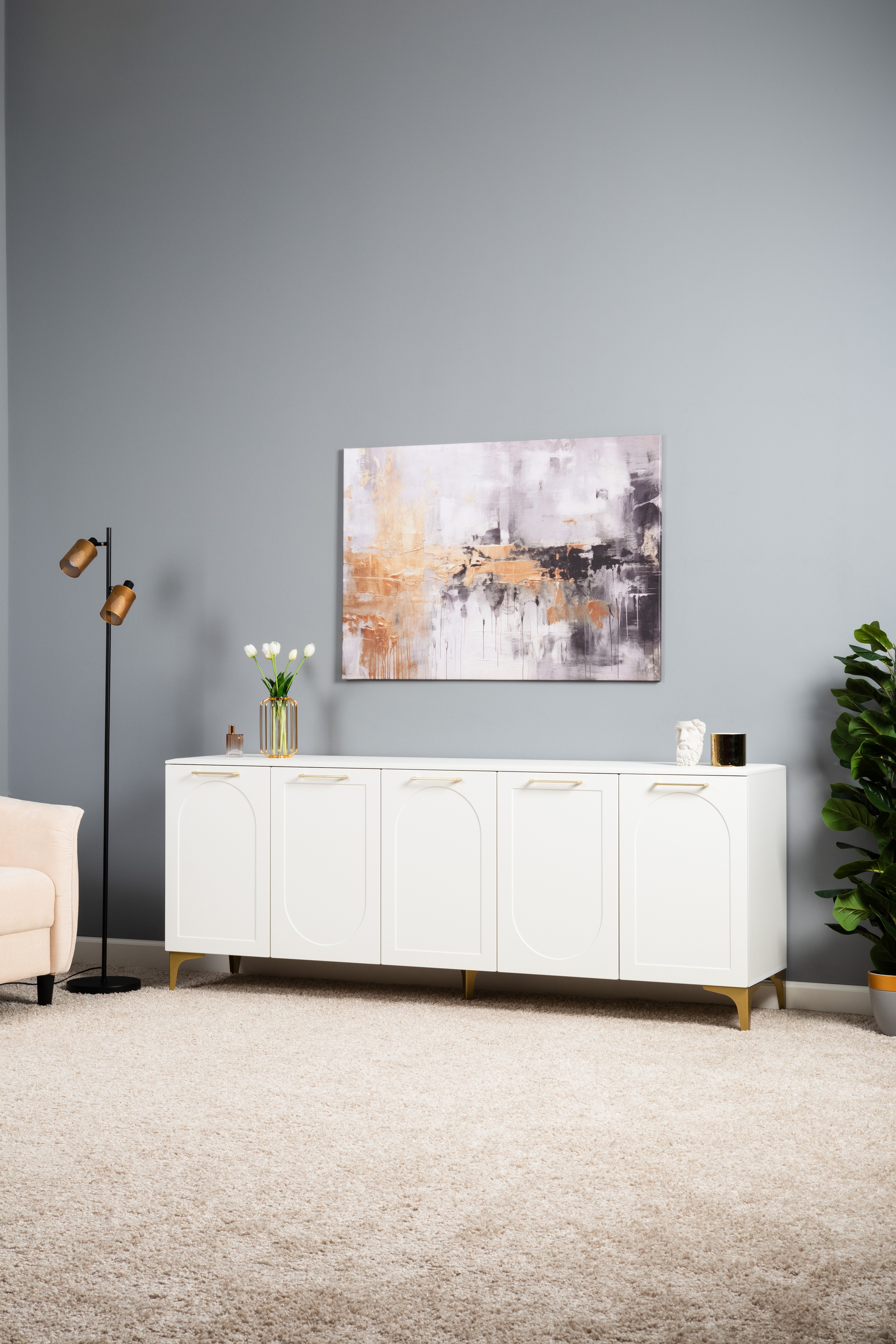 Тумба под ТВ в гостиную Вайс 13.270.01 дуб золотой CRAFT, милк софт ПВХ, темно-серый