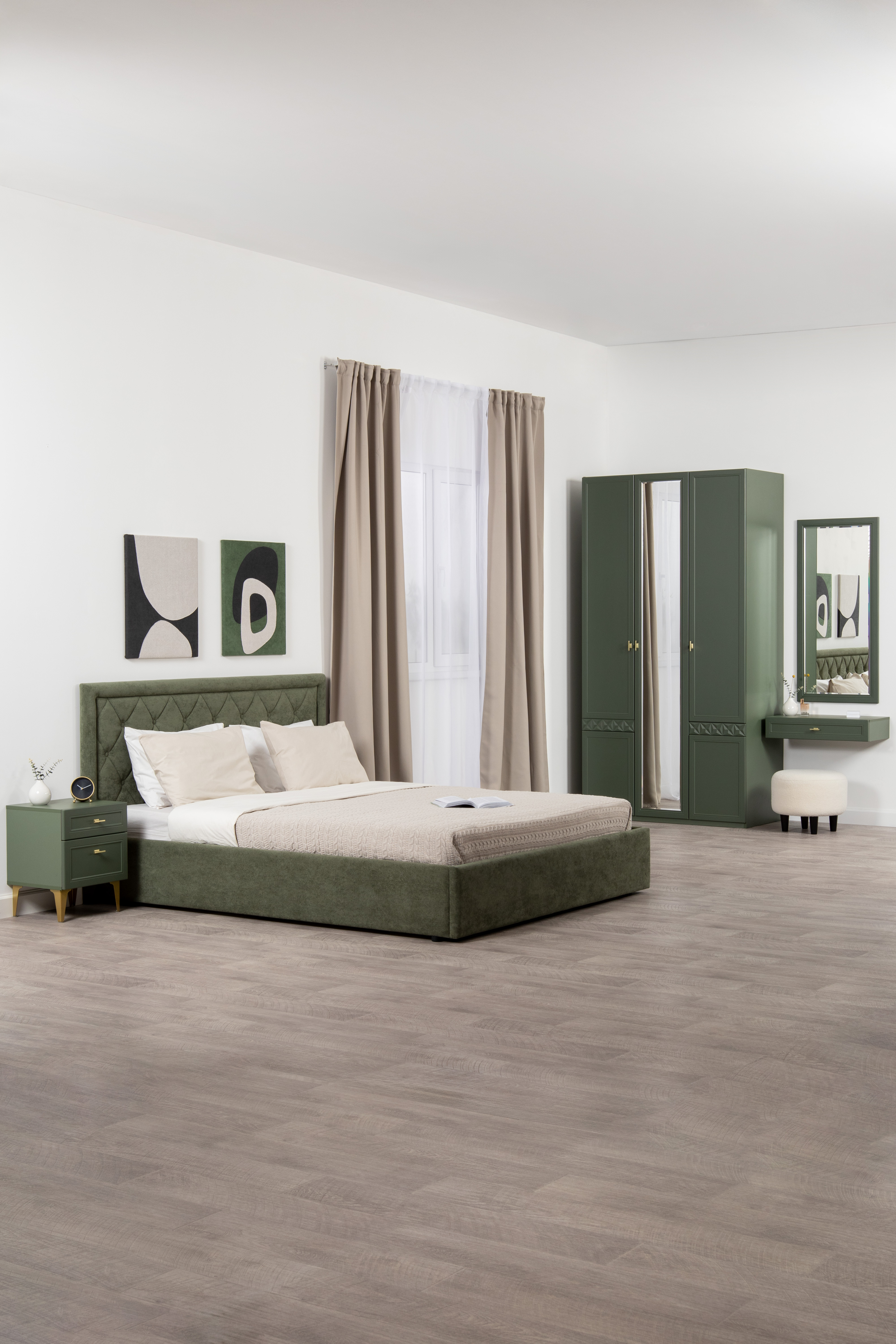 Тумба прикроватная Марион 16.14 дымчатый зеленый K521, олива шагрень AG 1050 ПВХ, белый PE шагрень