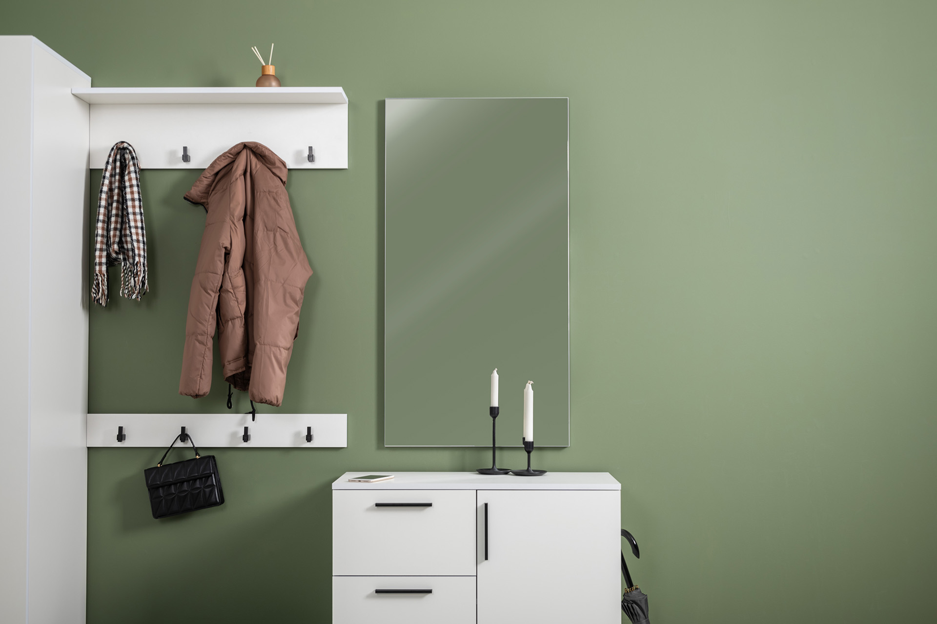 Зеркало навесное Эйр 17.13 белый РЕ шагрень, вертикальное и горизонтальное навешивание